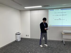 ~代表者がみんなの前で発表している風景~